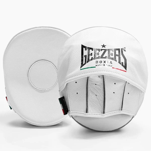 Geezers Boxia Stallion Speed Punch Mitts – Made from the highest quality Italian leather, the Geezers Boxia Stallion Speed Punch Mitts weight approximately 8.6 ounces each and measure on at 9.5″ high x 7.7″ wide x 0.9″ thick. The slip on fingerless hand compartments fit the hands like a glove and keep them comfortable and secure during use. This strapless slip on design also allows the hands to slip in and out with ease. Along with all Geezers Boxia Equipment, the speed pads are manufactured in Italy to the safest and highest quality there is in the industry.