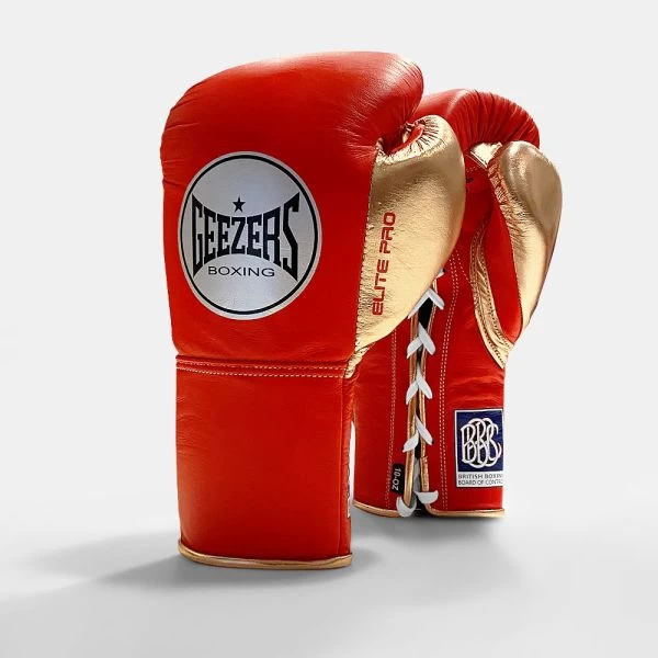 Geezers Elite Pro Fight Boxing Gloves –Â Approved by the BBBofC our pro fight boxing gloves are perfect for all professional fights. Made from premium quality, metallic leather, the gloves have long-lasting durability and performance. The gloves construction is shaped so that your hand is guided into a natural fist position when in use. There is no doubt that these boxing gloves are one of the best pro fight boxing gloves on the market.