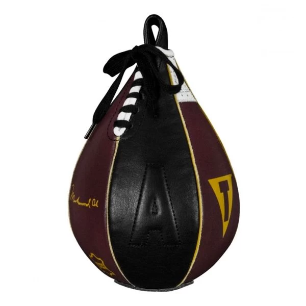 TITLE ALI Genuine Leather Speed Bag – Honor the Greatest Of All Time, Muhammad Ali, with TITLE Boxing’s ALI Genuine Leather Speed Bag. Crafted from 100% Genuine Leather and welted leather seams, this speed bag was built to take your worst. The classic and contemporary colors help you keep your eye on this perfectly curved bag so you can watch see the precise rebound every time. The debossed stitched ALI lettering on alternating leather panels will bring perfect style to any gym. This speed bag is officially licensed and approved by the Greatest Of All Time and the man that redefined the sport.